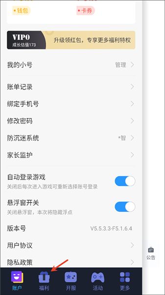 1、進入游戲內我們點擊小彈窗,然后選擇福利。