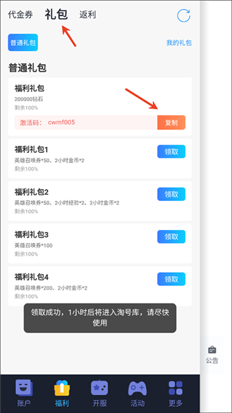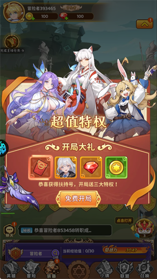 點擊【免費開局】領取扶持號+三大特權(角色、鉆石、金幣),直接解鎖0.05折低門檻福利。