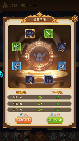 優先用資源【強化10次】全套裝備,快速提升攻擊、防御等屬性,為推關鋪路。