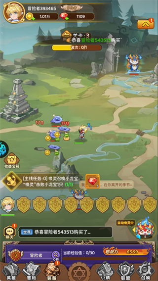 開啟自動挑戰關卡,完成主線任務獲取鉆石、資源,提升總戰力。