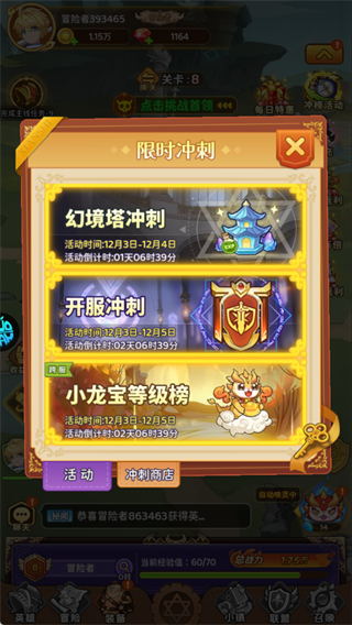參與幻境塔、開服沖刺等活動,完成目標可獲得稀有道具,快速拉開戰力差距。
