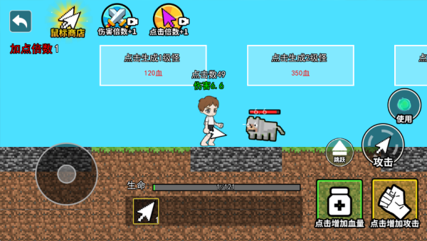 2、從第一關開始,你的傷害力只有一點,可以點擊上方的視頻,解鎖傷害倍數;