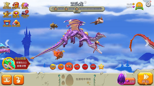 2、玩家初始只有一條小龍,通過在天空中獵食成長。這個游戲的寵物是要自己找蛋來解鎖的,而龍是生長度滿后解鎖下一條的金幣購買。