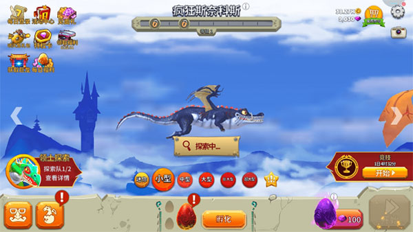 4、在龍窟內對飛龍進行升級后來到這個魔幻的世界中,S級的龍連捕食小鳥難度都比較大,但在經過升級速度、加速之后,就能快速捕食,延長游戲時間。
