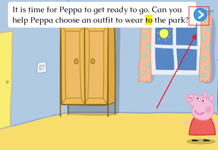 “自己讀”和“讀給我聽”選項,突出顯示故事文本,這樣聽眾就可以跟著讀下去。