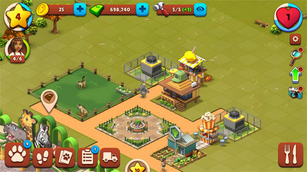 3、畫面風(fēng)格高度貼合動(dòng)物園主題,動(dòng)物形象刻畫得鮮活生動(dòng),各類場(chǎng)館、綠化等設(shè)施場(chǎng)景也打造得精致細(xì)膩,為你營(yíng)造出極具代入感的沉浸式經(jīng)營(yíng)氛圍。
